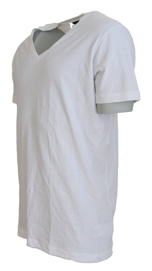 Camiseta de manga corta con cuello en V de lino y algodón en color blanco de Dsquared²