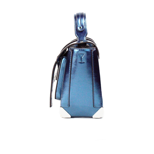 Bolso satchel mediano Manhattan de cuero verde azulado con asa superior