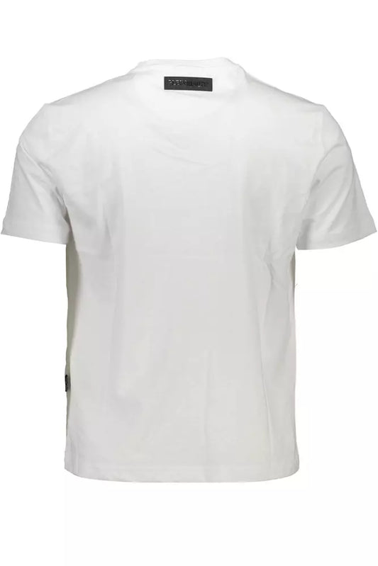 Camiseta elegante de algodón blanca con cuello redondo y detalles en contraste de Plein Sport