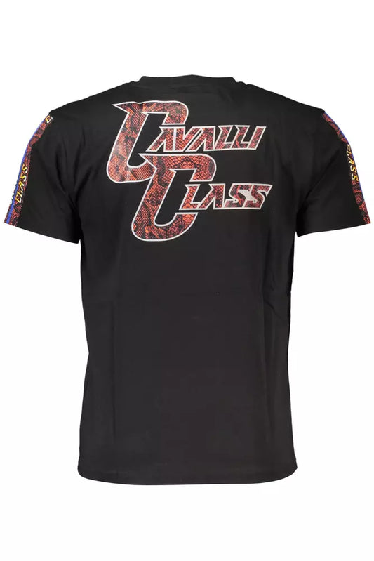 Camiseta elegante de cuello redondo negra con estampado clásico de Cavalli Class