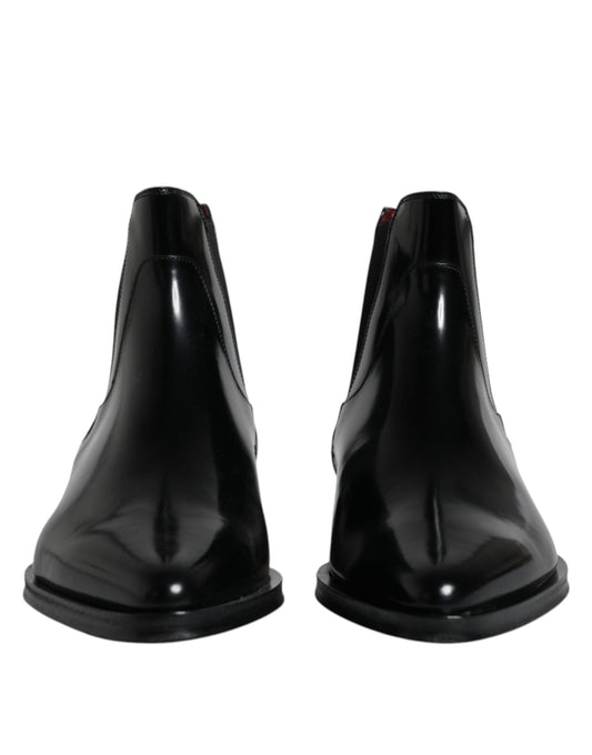 Dolce & Gabbana Black Leather Chelsea Ankle Boots Shoes