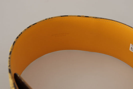 Cinturón elegante de piel marrón con hebilla grabada de Dolce & Gabbana