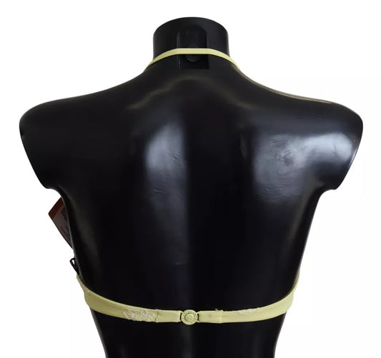 Ermanno Scervino Bañador balconette con cuello halter y estampado floral amarillo
