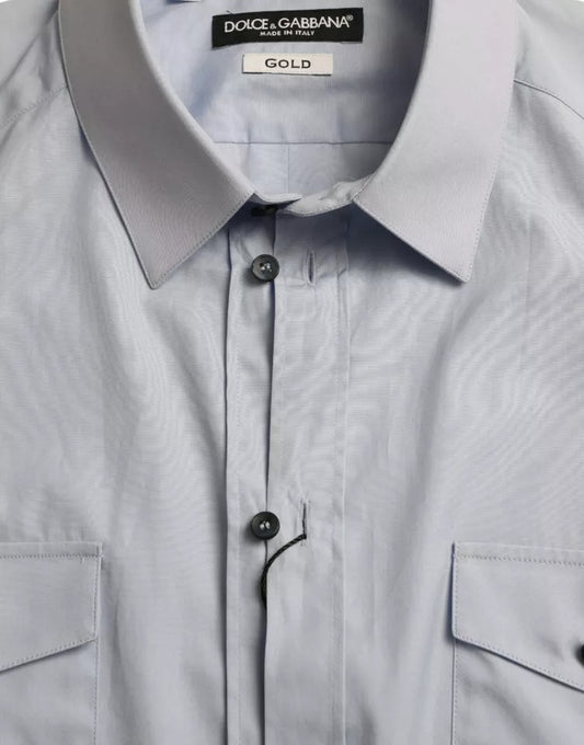 Camisa casual de manga corta de algodón azul Dolce & Gabbana GOLD