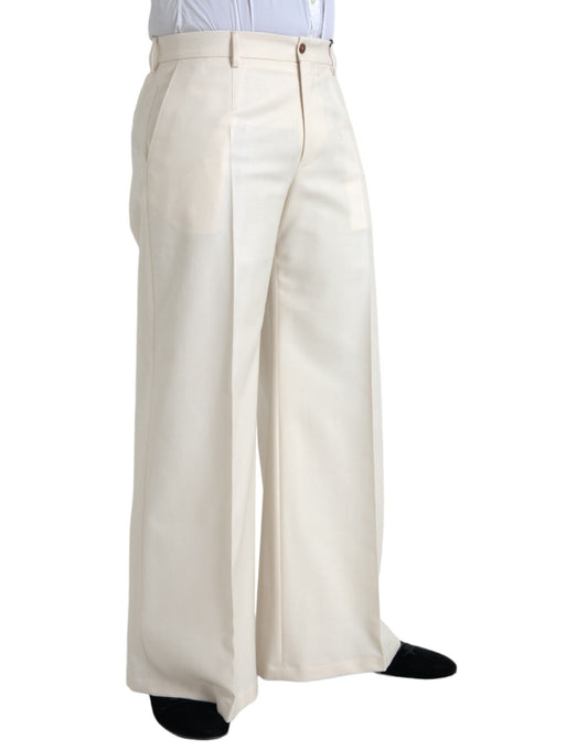 Pantalones de tiro medio y pierna ancha de lana blanca de Dolce & Gabbana