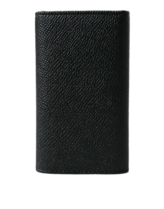 Llavero triple plegable con placa del logo en piel de becerro negra