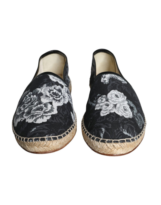 Alpargatas de piel de algodón con estampado floral negro de Dolce & Gabbana