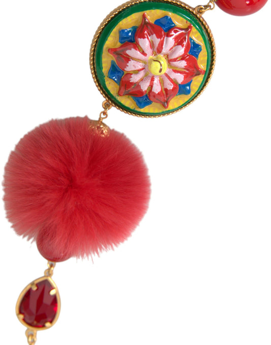 Collar de cadena Carretto de piel roja con cristales y latón dorado de Dolce & Gabbana