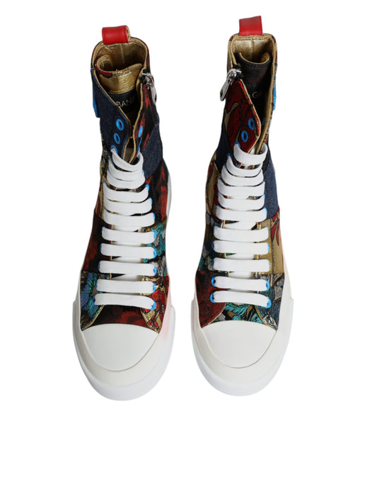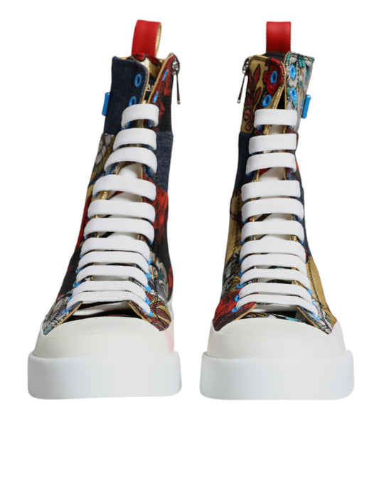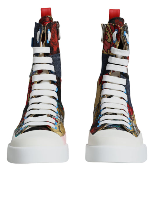 Dolce & Gabbana Multicolor Patchwork Logo High Top Sneakers Shoes