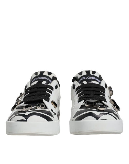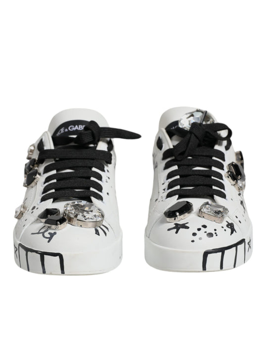 Dolce & Gabbana White Crystal Portofino Low Top Sneaker Shoes