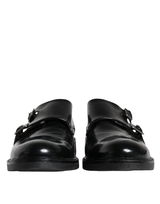 Daniele Alessandrini Black Leather Monk Strap Dress Formal Shoes