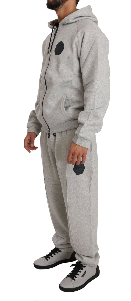 Billionaire Italian Couture Elegant Gray Cotton Sweatsuit Ensemble