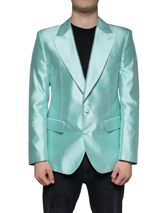 Dolce & Gabbana Mint Green Silk Single Breasted Coat Blazer