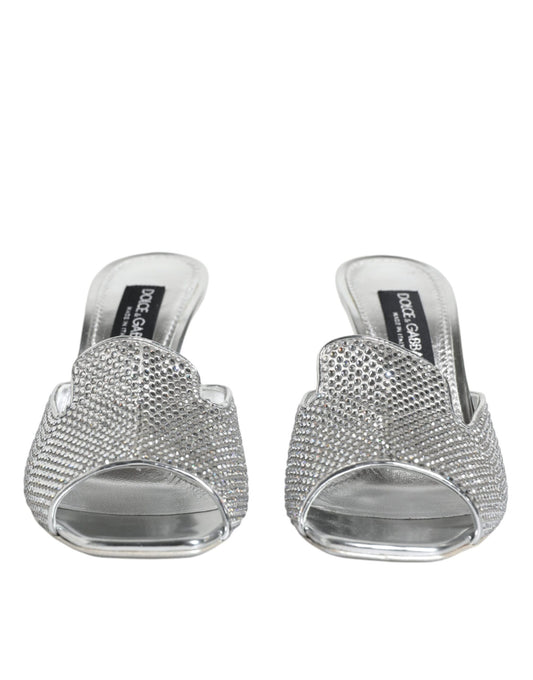 Dolce & Gabbana Silver Viscose Logo Heels Slide Sandals Shoes