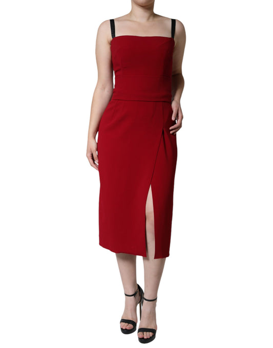 Dolce & Gabbana Red Viscose Stretch Side Slit Sheath Midi Dress