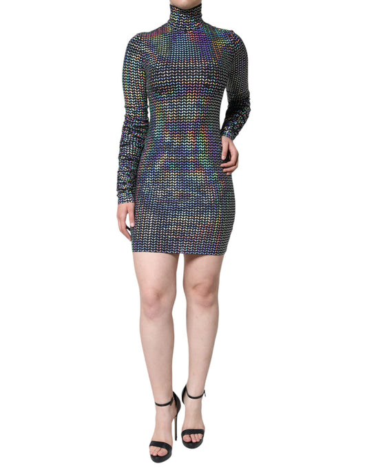 Dolce & Gabbana Silver Embellished Long Sleeves Turtleneck Dress