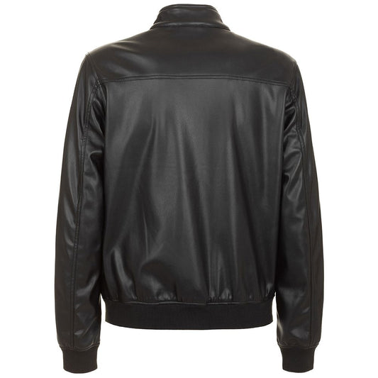 Fred Mello Eco-Leather Zip-Up Jacket with Buttoned Collar