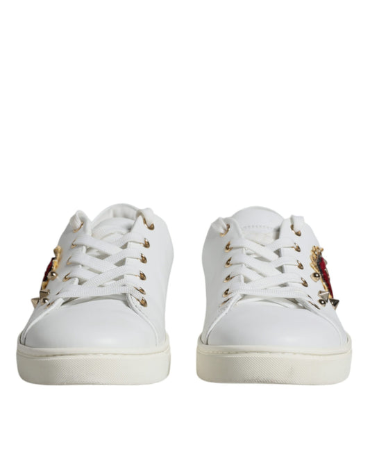 Dolce & Gabbana White Heart Studded Low Top Sneakers Shoes
