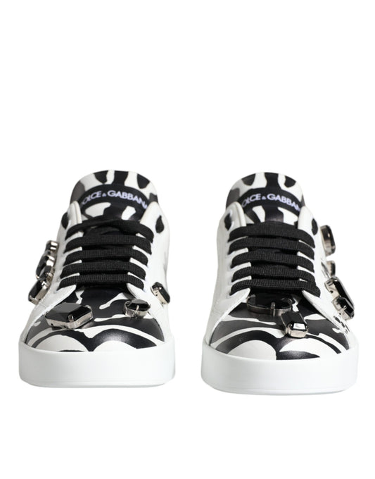 Dolce & Gabbana White Crystal Portofino Low Top Sneaker Shoes