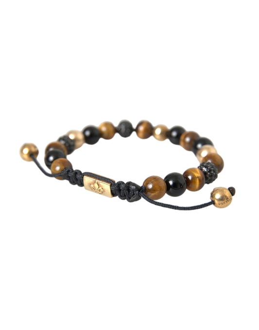 Nialaya CZ Ball Tiger Eye Stone Copper Beaded Men Bracelet