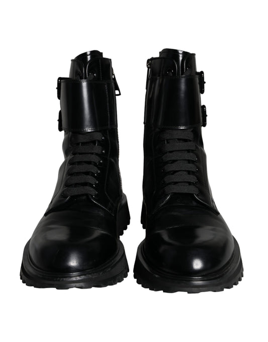 Dolce & Gabbana Black Leather Lace Up Men Mid Calf Boots Shoes