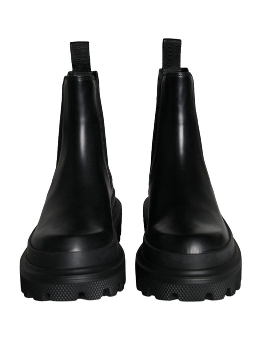 Dolce & Gabbana Black Leather Slip On Stretch Trekking Boots Shoes