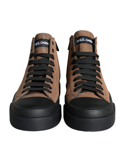 Dolce & Gabbana Black Brown Denim High Top Men Sneakers Shoes