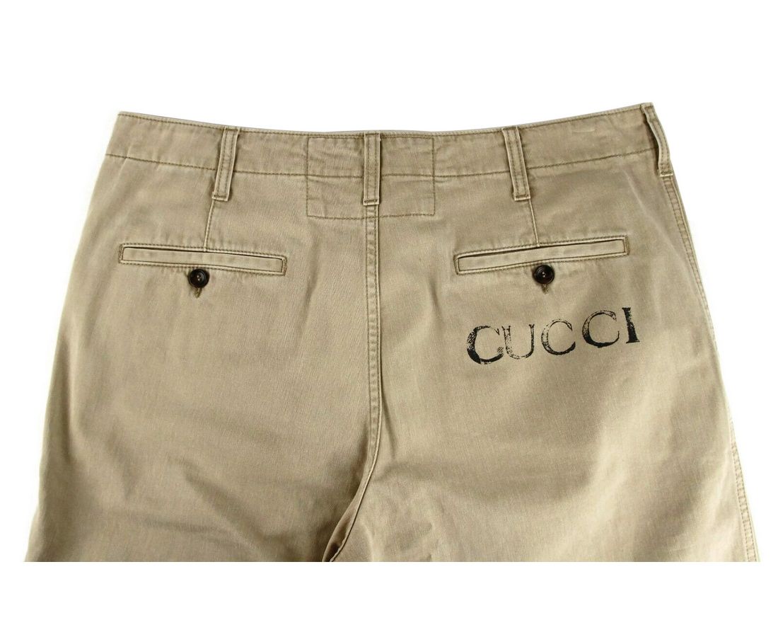 Light Brown Washed Cotton Pant Gucci Print