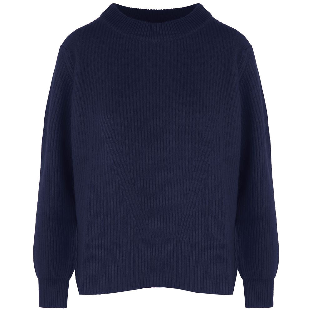Malo women’s cashmere crew-neck sweater with ribbed embroidery, side slit, slightly longer back