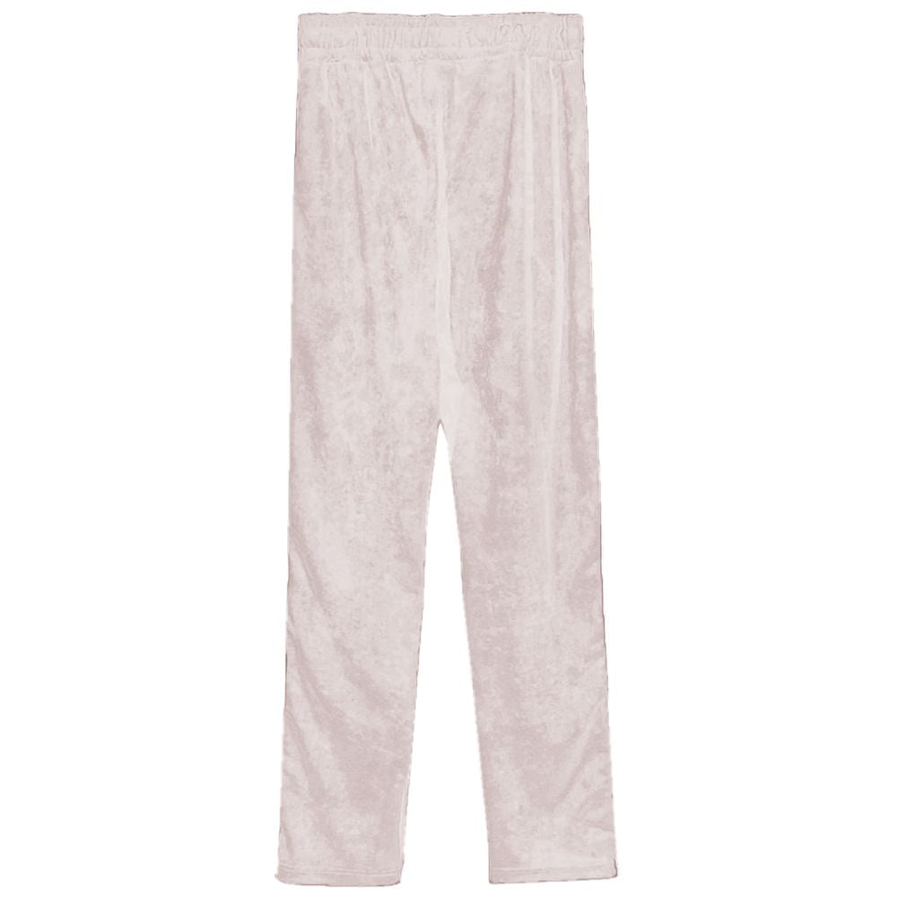 Pantalón Comme des Fuckdown de chenilla elástica con logotipo bordado en la parte delantera, dos bolsillos laterales y rayas blancas y rojas en los laterales de las piernas.
